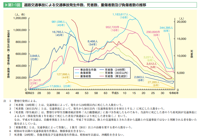内閣府が公表した「令和7年版交通安全白書」によると、令和6年中の交通事故発生件数は29万895件で、前年よりも1万7,035件減少しています。しかし依然として交通事故が多くの命や社会的資源を奪っている状況に変わりありません。