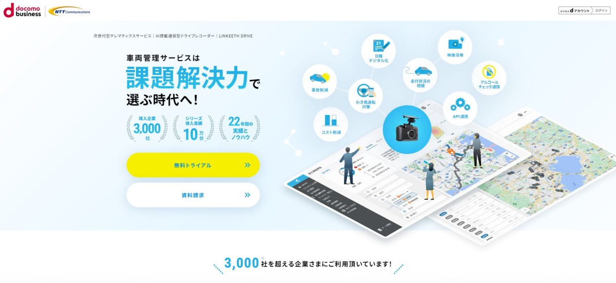 | サービス名 | Bqey(ビーキー) | D-Drive | Booking Car | Bqey(ビーキー) | SmartDrive Fleet | くるみえ | LINKEETH | DRIVE CHART | KITARO | SmartDrive Fleet | Cariot | BUSINESS NAVETIME 動態管理ソリューション | Bqey(ビーキー) | AI-Contact フリート | KIBACO |