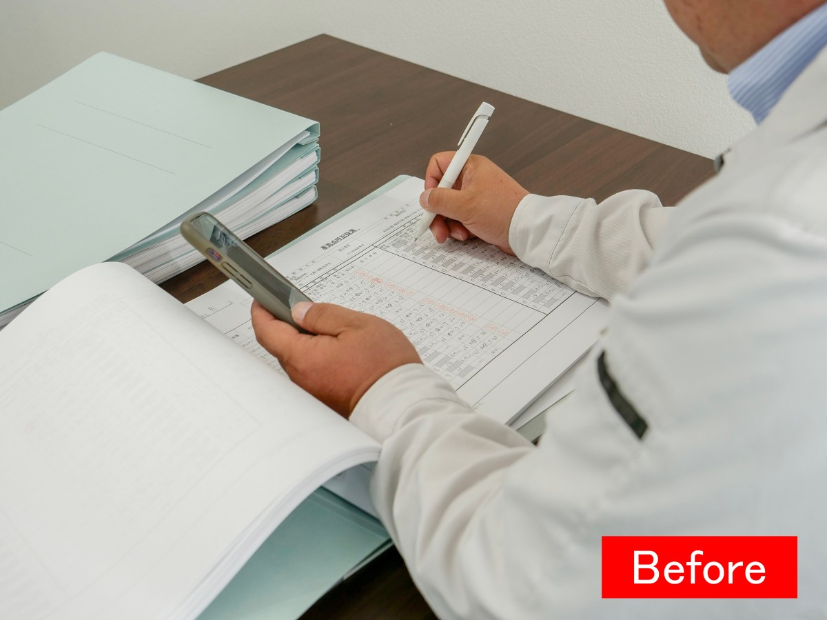 土日を挟む月曜日は特に作業が多くなり、朝の記入作業だけで30~40分ほどかかっていました。土曜日や祝日の分もまとめて紙に記録しなければならなかったため、平日と月曜日では大きく異なります。」
