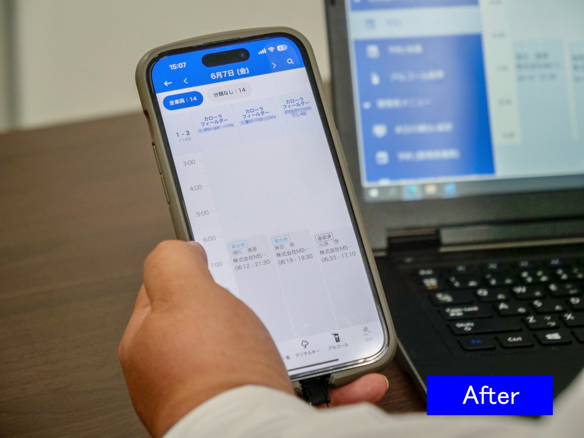 - いつ誰がどの社用車を利用するのかを社用車管理者が割り振り展開しており、手間だった