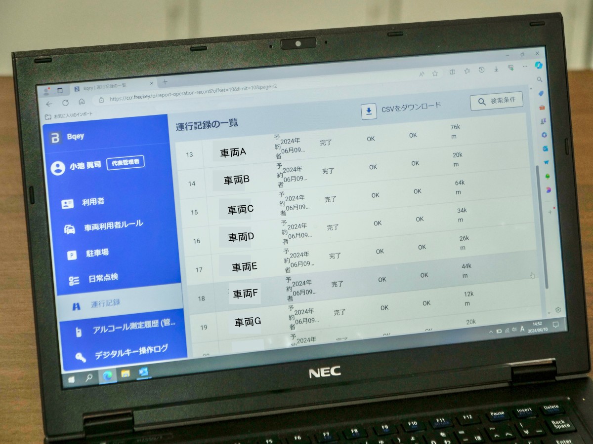 「1つのツールですべての作業を完結できることが重要でした。アルコールチェック以外にも、運転日報や使用者の記録など、社用車関連で残しておかなければならないものが多くあり、それぞれ分散して管理していました。それらを1つのツールでまとめて実施できることが、私の理想でした。」