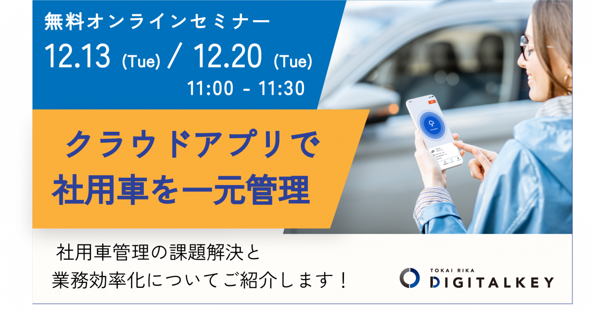 株式会社東海理化は、社用車管理のDXを実現する社用車管理システム「FREEKEY 社用車予約」のウェビナーを開催します。社用車の管理を効率化できる本システムの特長やアルコールチェック連携機能についてご紹介します。