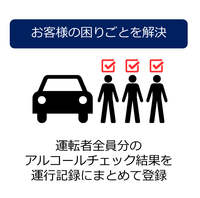 社用車の運転を交代する場合、交代後の運転者も含め、全員分のアルコールチェック結果を運行記録にまとめて登録したい
