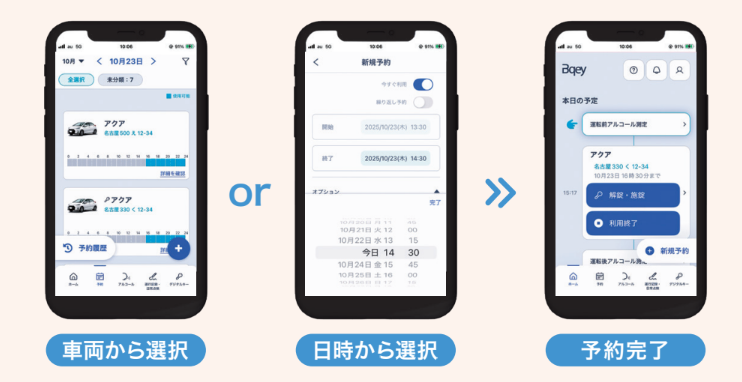 - 車両予約が「車両」または「日時」の2つのパターンから選べるようになりました。